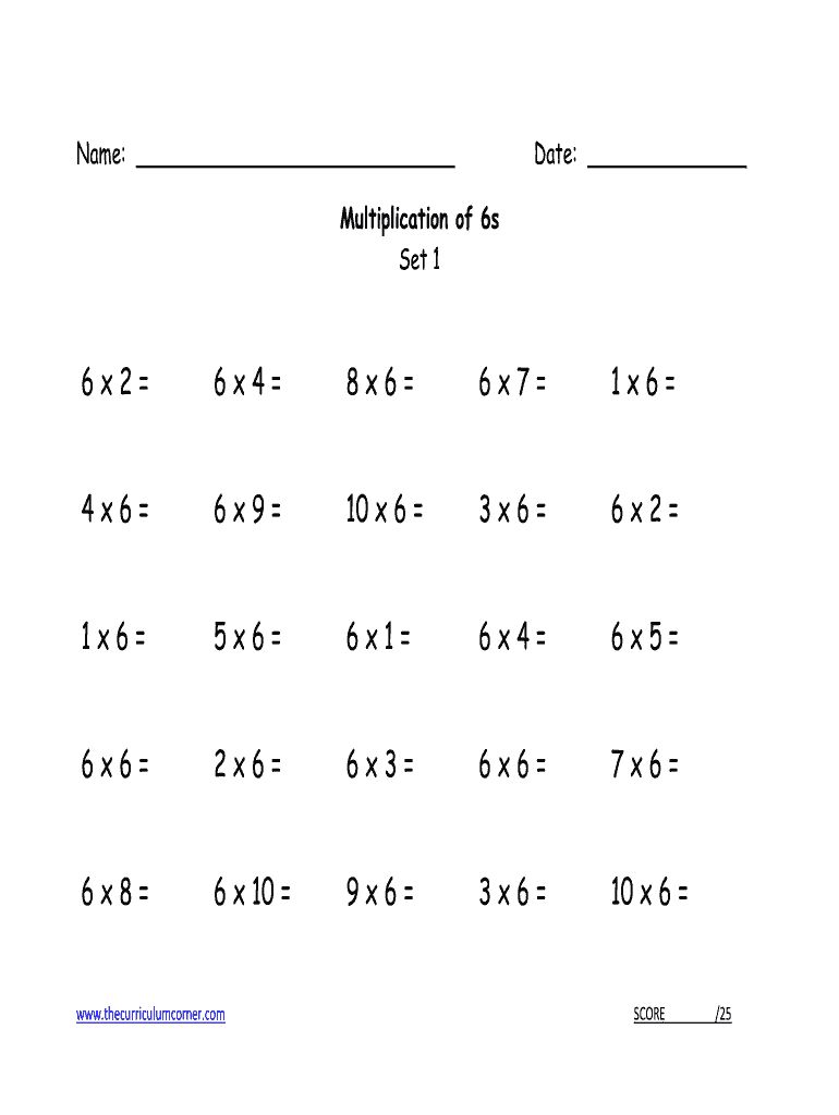 Get the free Name: Date: Multiplication of 6s Set 1 6x2 6x4 8x6 6x7 1x6 4x6 6x9 10 x 6 3x6 6x2 1x...