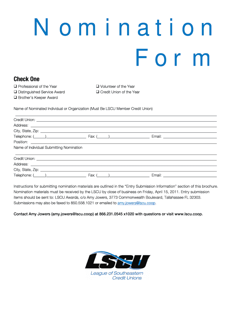 Nomination Form - Lscu is not the form you're looking for?Search for another form here.