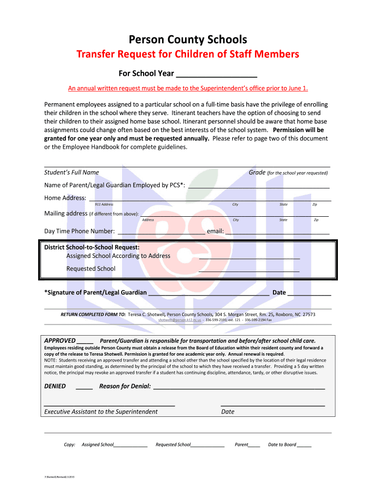 Get the free For School Year - Person County Schools - person k12 nc