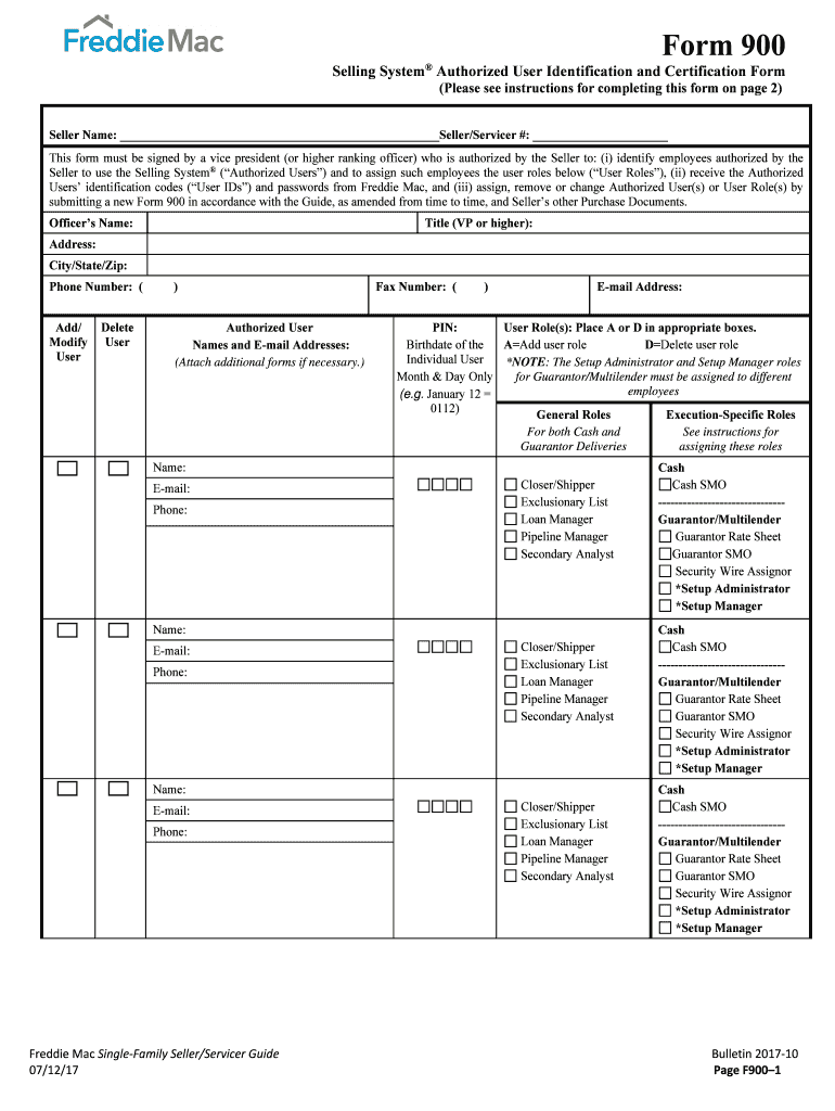 Form 900Selling System Authorized User Identification and Certification Form (Please see instructions for completing this form on page 2)Seller Name: Seller/Service #: This form must be signed by