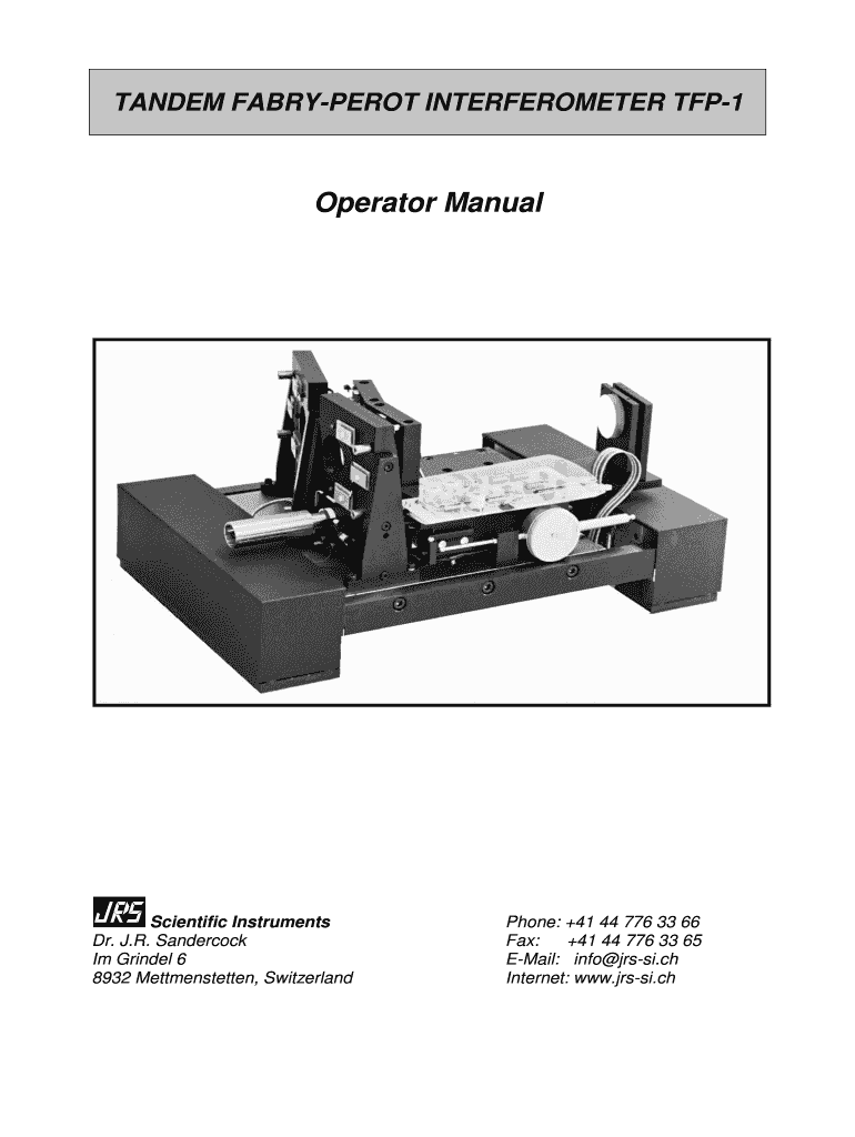 TANDEM FABRYPEROT INTERFEROMETER TFP1Operator ManualScientific Instruments