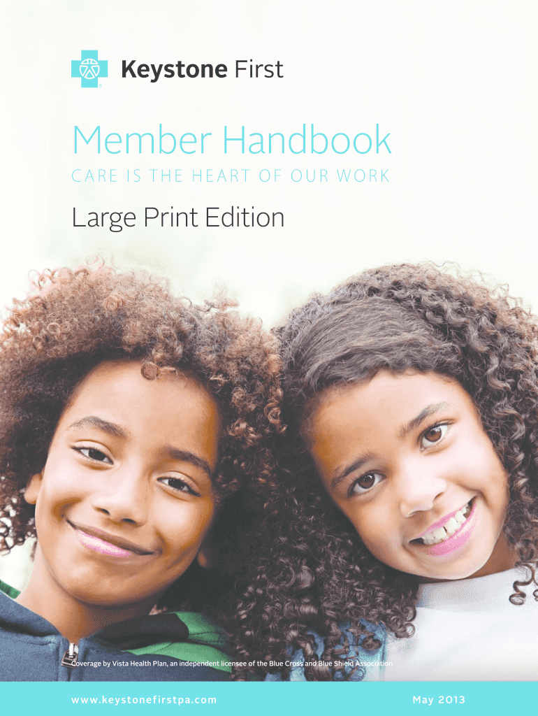 Keystone First Member Handbook care is the heart of our work Large Print Edition Coverage by Vista Health Plan, an independent licensee of the Blue Cross and Blue Shield Association. W w w. key s