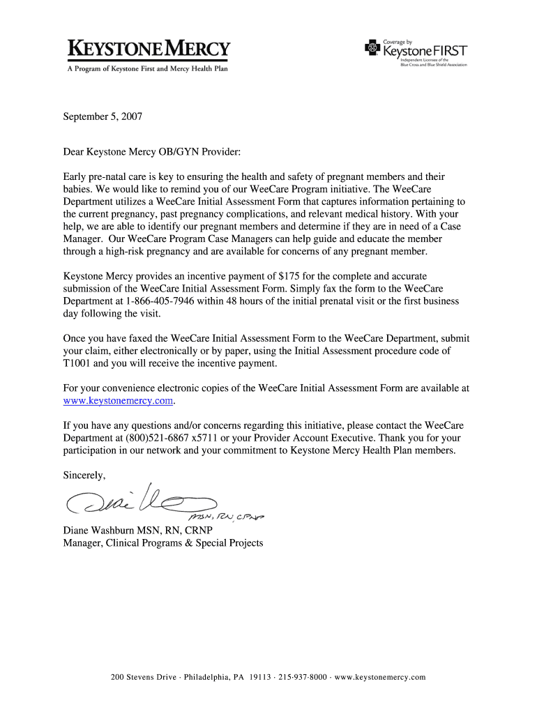 Get the free WeeCare Initial Assessment Form Incentive - Letters - Providers ...