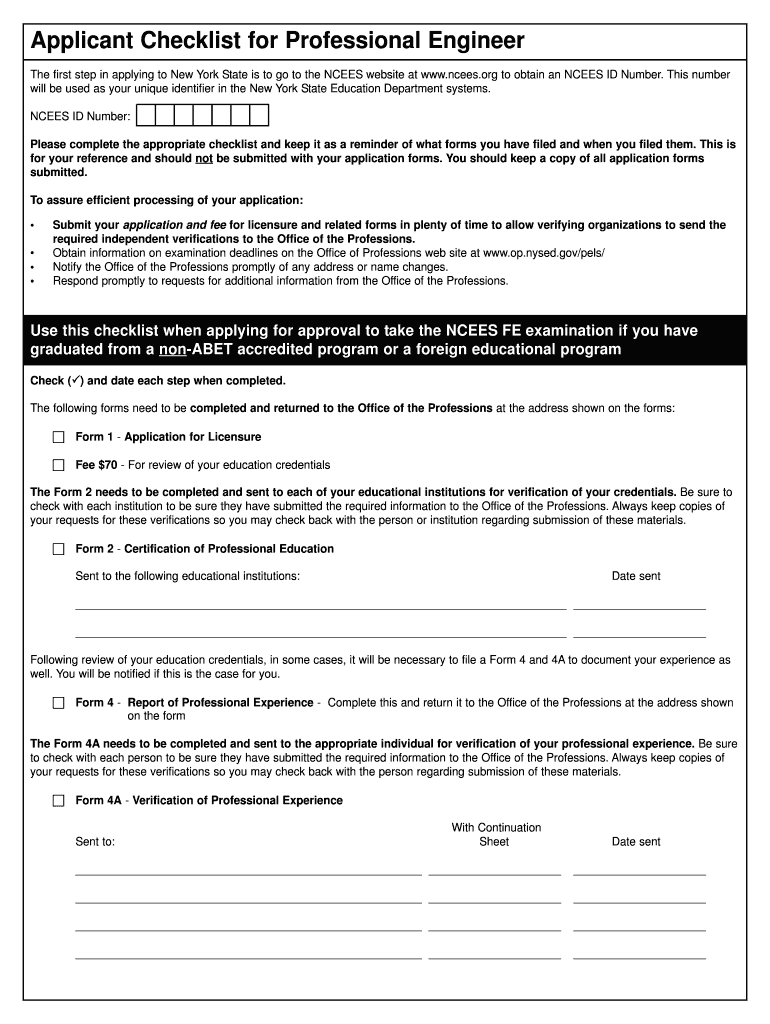This checklist is primarily for individuals seeking professional engineering licensure in New York State. Eligibility typically requires a degree in engineering, relevant work experience, and passing required examinations.