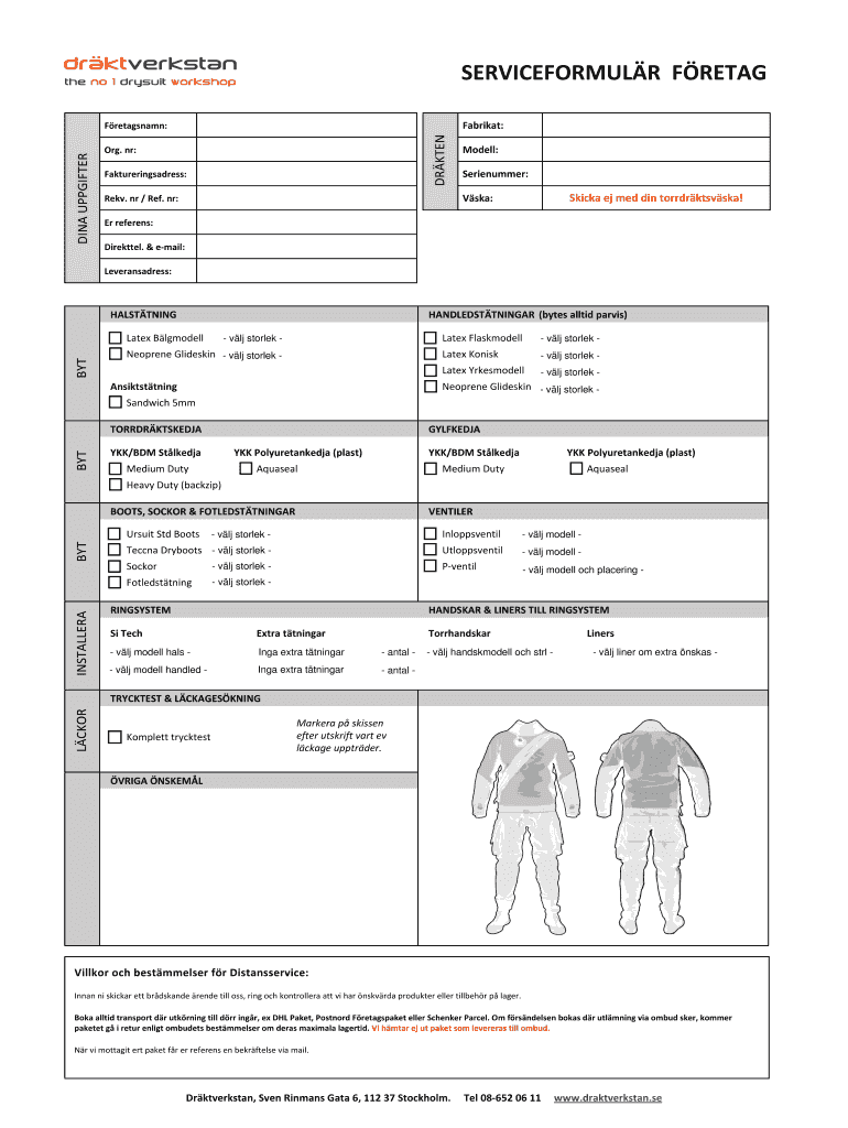 Get the free SERVICEFORMULRFRETAG - bdraktverkstanbbseb