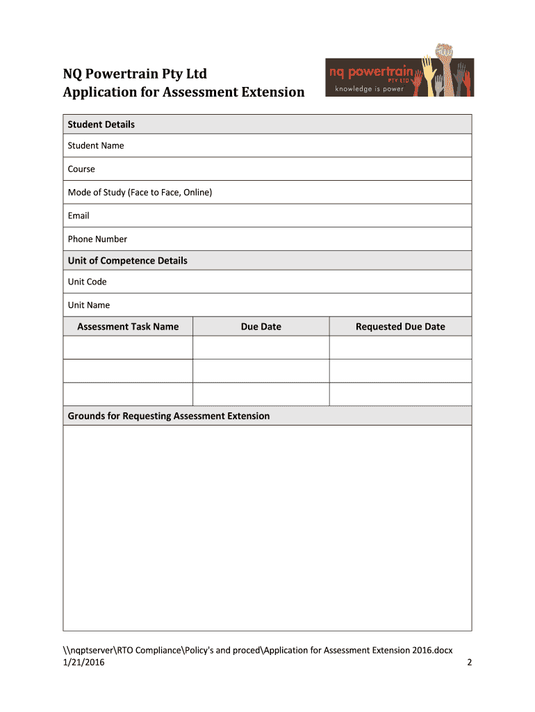 Get the free NQ Powertrain Pty Ltd Application for Assessment Extension