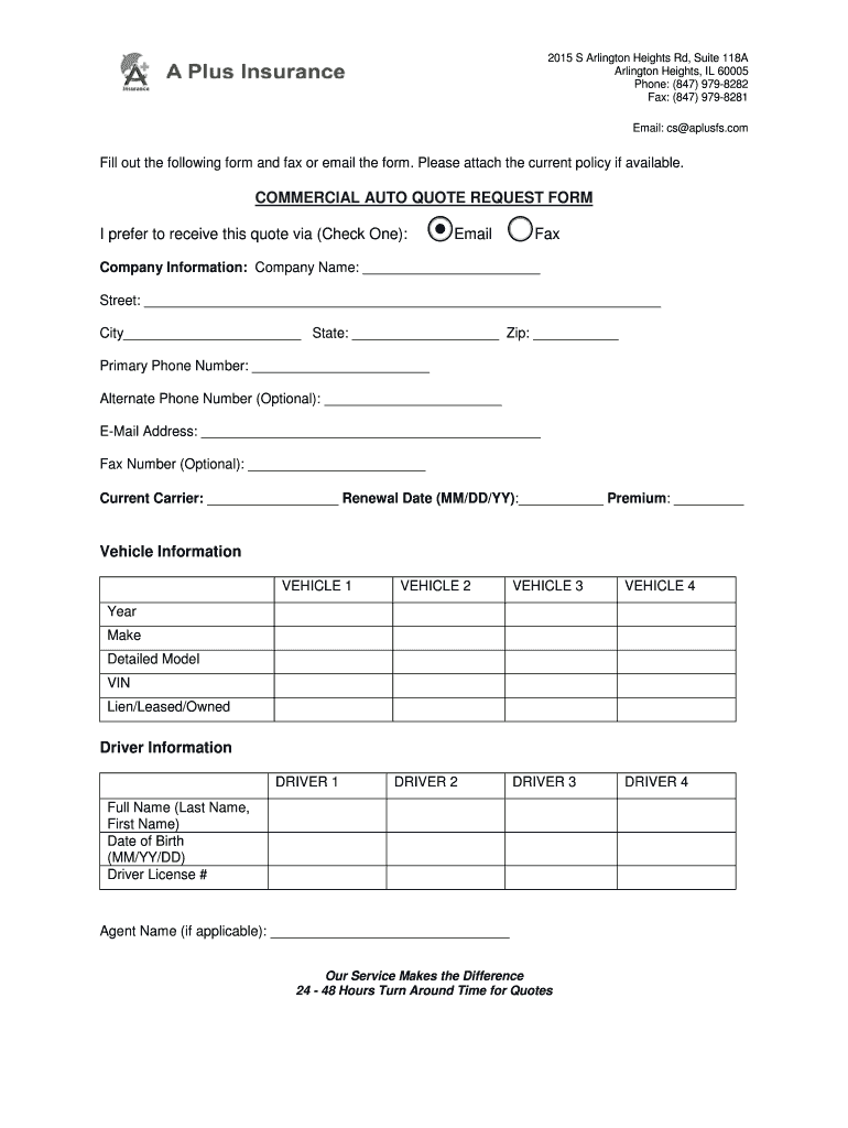 COMMERCIAL AUTO QUOTE REQUEST FORM. I prefer to receive this quote via (Check One): Email Fax. Company Information: Company Name: ...