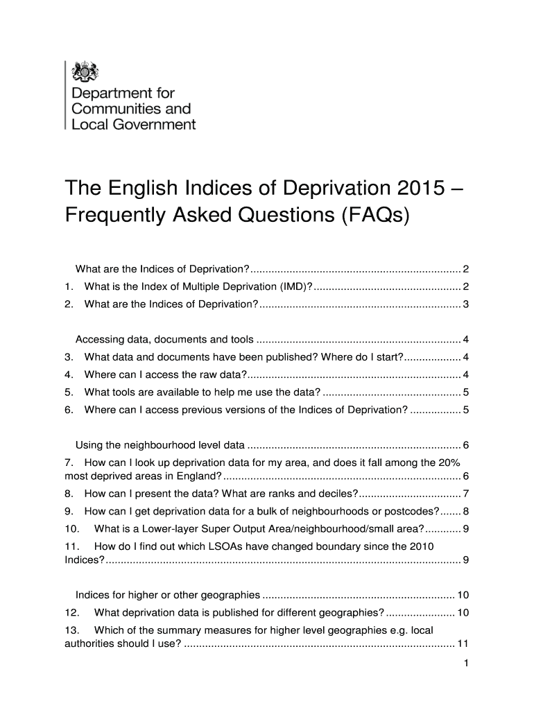 Get the free The English Indices of Deprivation 2015 Frequently Asked Questions (FAQs) What are t...