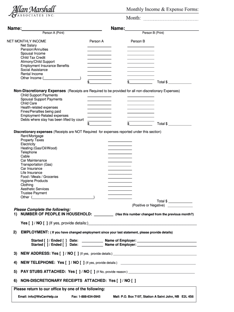 Name: Name: Person A (Print) Person B (Print) NET MONTHLY INCOME Net Salary Pension/Annuities Spousal Income Child Tax Credit Alimony/Child Support Employment Insurance Benefits Social Assistance