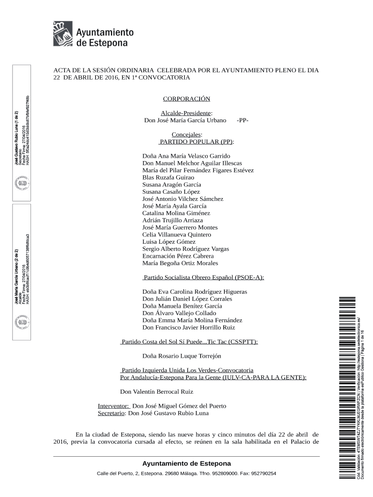 Get the free Acta Pleno Ordinario 22 de abril de 2016 - Ayuntamiento de Estepona - ayuntamiento e...