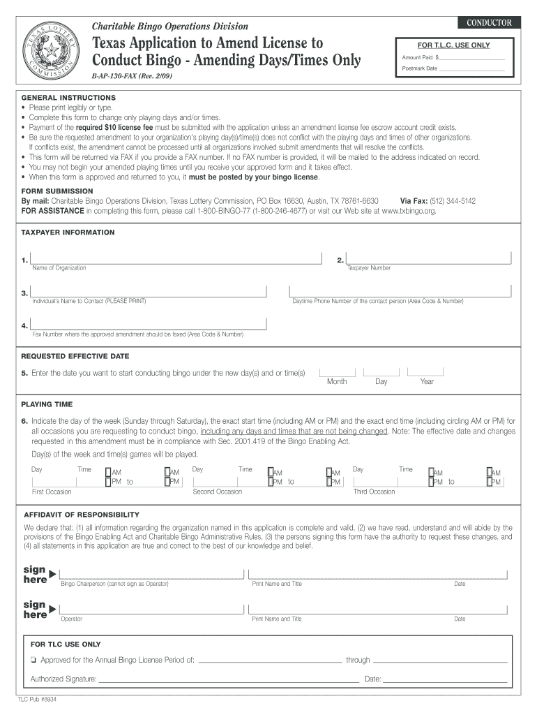 How to fill out the texas bingo license amendment