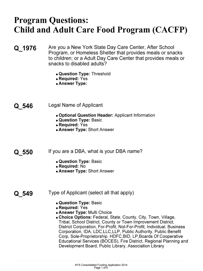 Get the free Program Questions: Child and Adult Care Food Program (CACFP) Q 1976 Are you a New Yo...