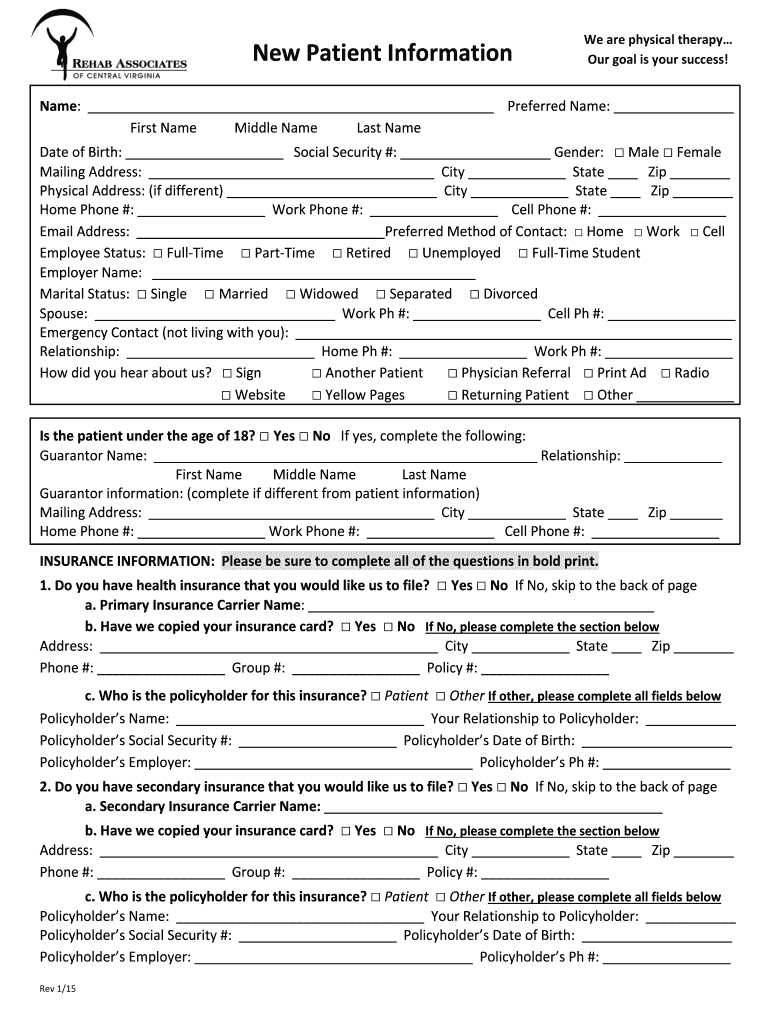 Patient Policies This notice describes the policies that Rehab Associates of Central Virginia follows regarding how medical information about you