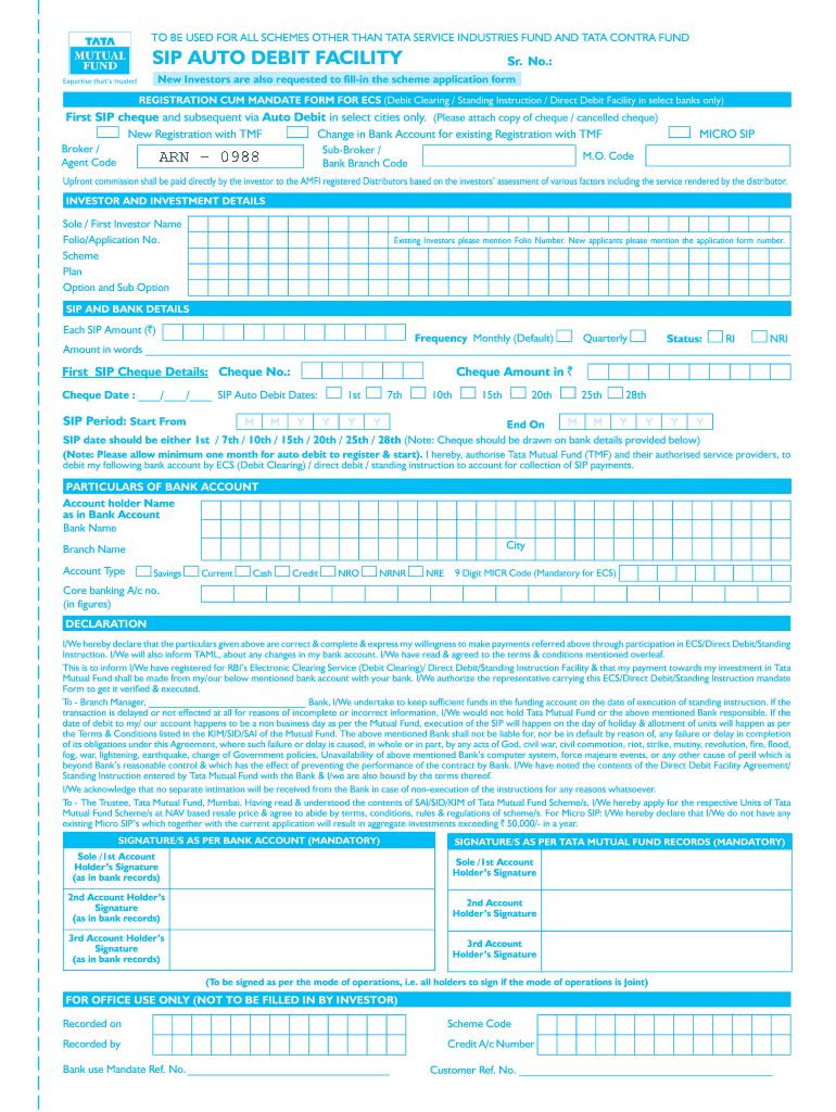 Who Needs the Tata Mutual Fund SIP Auto Debit Registration Form?