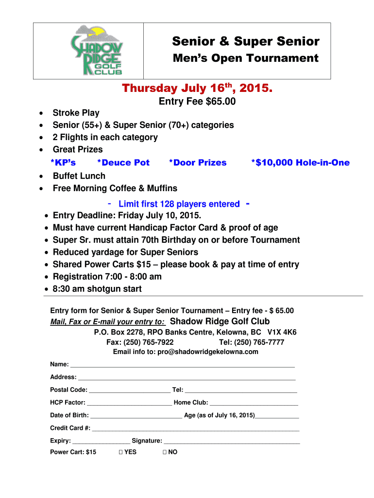 Get the free Senior amp Super Senior - bshadowridgekelownabbcomb