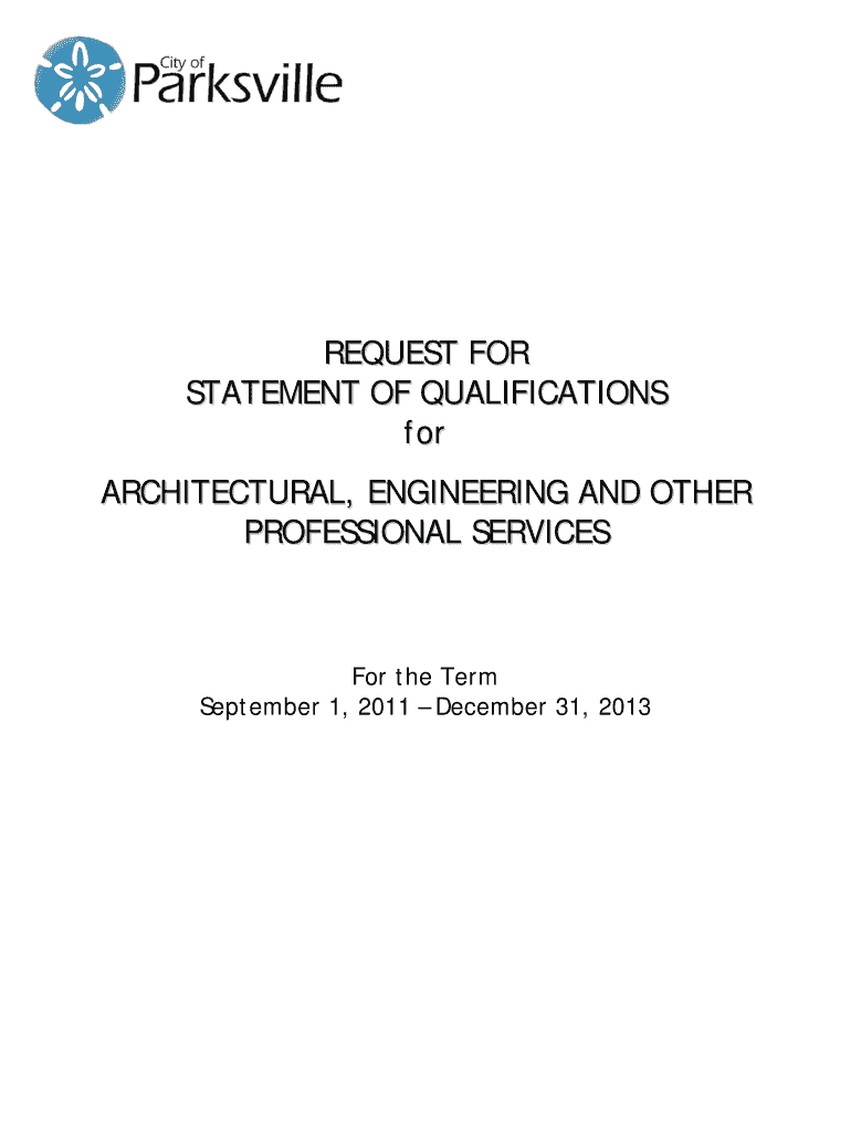 REQUEST FOR STATEMENT OF QUALIFICATIONS for ARCHITECTURAL, ENGINEERING AND OTHER PROFESSIONAL SERVICES For the Term September 1, 2011, December 31, 2013, STATEMENT OF QUALIFICATIONS PACKAGE FOR ARCHITECTURAL,