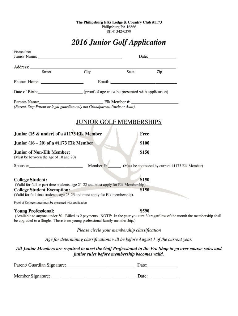 Get the free 2016 Junior Golf Application - Philipsburg Elks