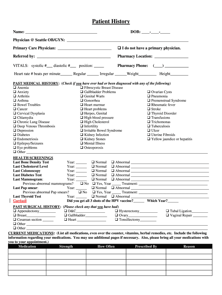 Patient History - Seattle is not the form you're looking for?Search for another form here.