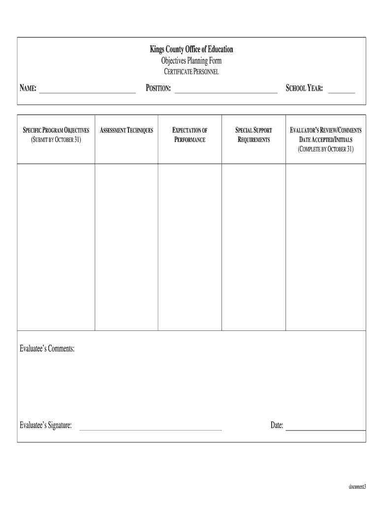 Get the free Kings County Office of Education Objectives Planning Form ...
