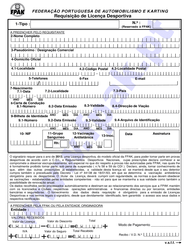 Get the free FEDERAO PORTUGUESA DE AUTOMOBILISMO E KARTING Requisio - camg