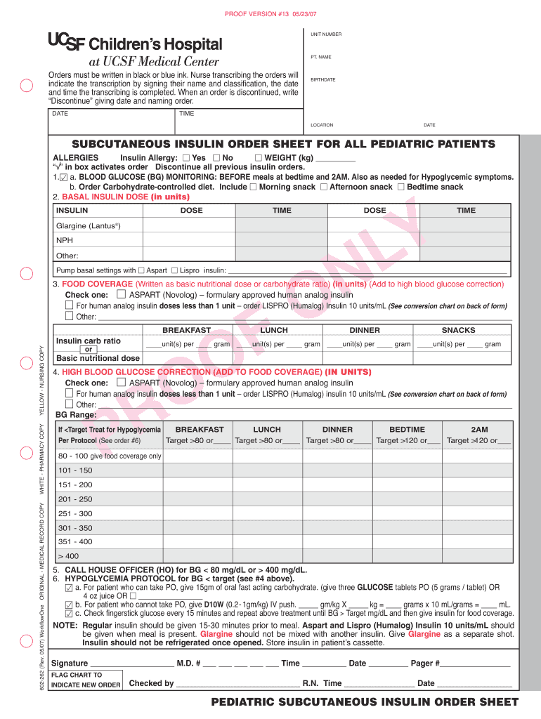 PROOF VERSION #13 05/23/07 UNIT NUMBER Orders must be written in black or blue ink. Nurse transcribing the orders will indicate the transcription by signing their name and classification, the date