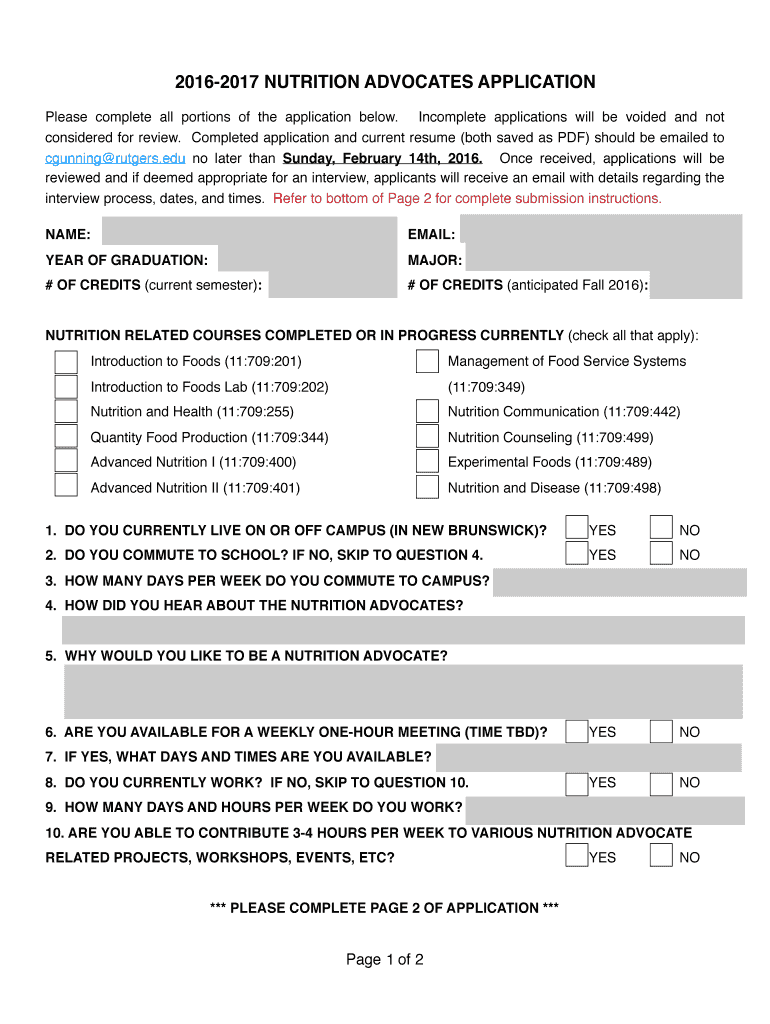 15 Feb 2016 ... 2016-2017 NUTRITION ADVOCATES APPLICATION ... Completed application and current resume (both saved as PDF) should be emailed to.