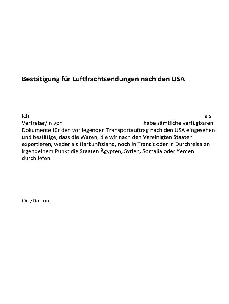 Get the free Besttigung fr Luftfrachtsendungen nach den USA - lamprecht