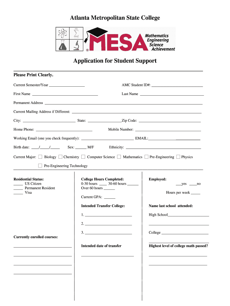 Get the free Atlanta Metropolitan State College bApplicationb for Student Support - atlm