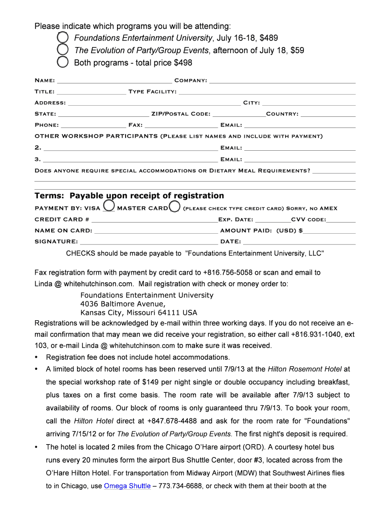 Please indicate which programs you will be attending: ! Foundations Entertainment University, July 16-18, $489 ! The Evolution of Party/Group Events, afternoon of ...