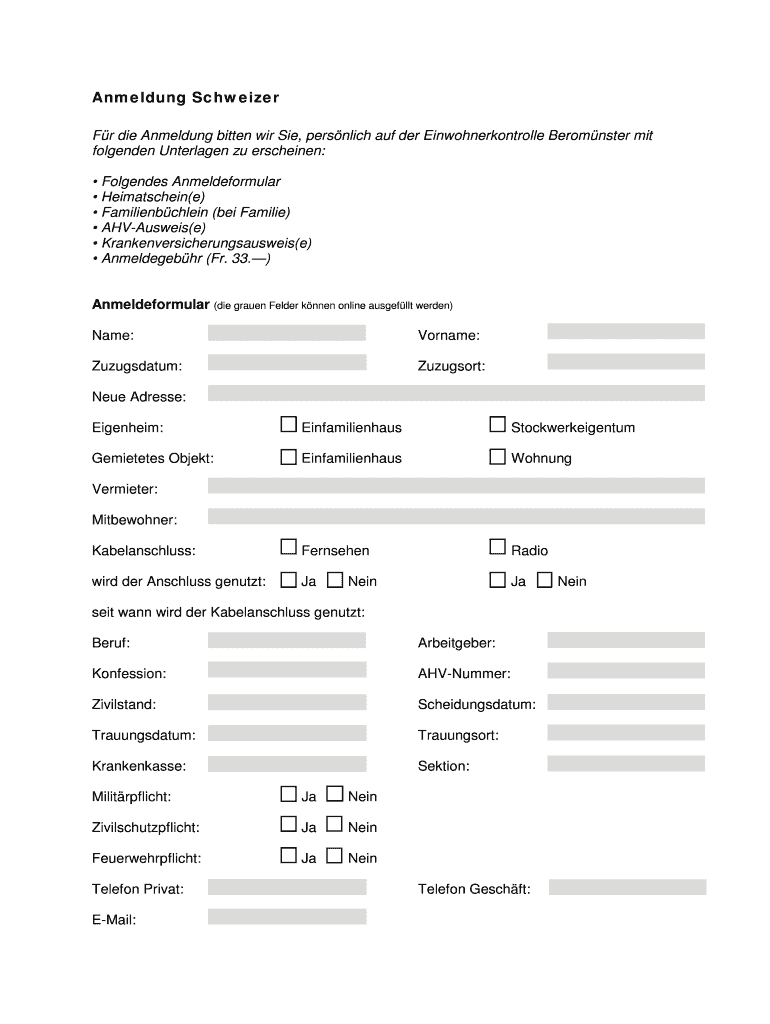 How to fill out anmeldung schweizer - beromuensterch: