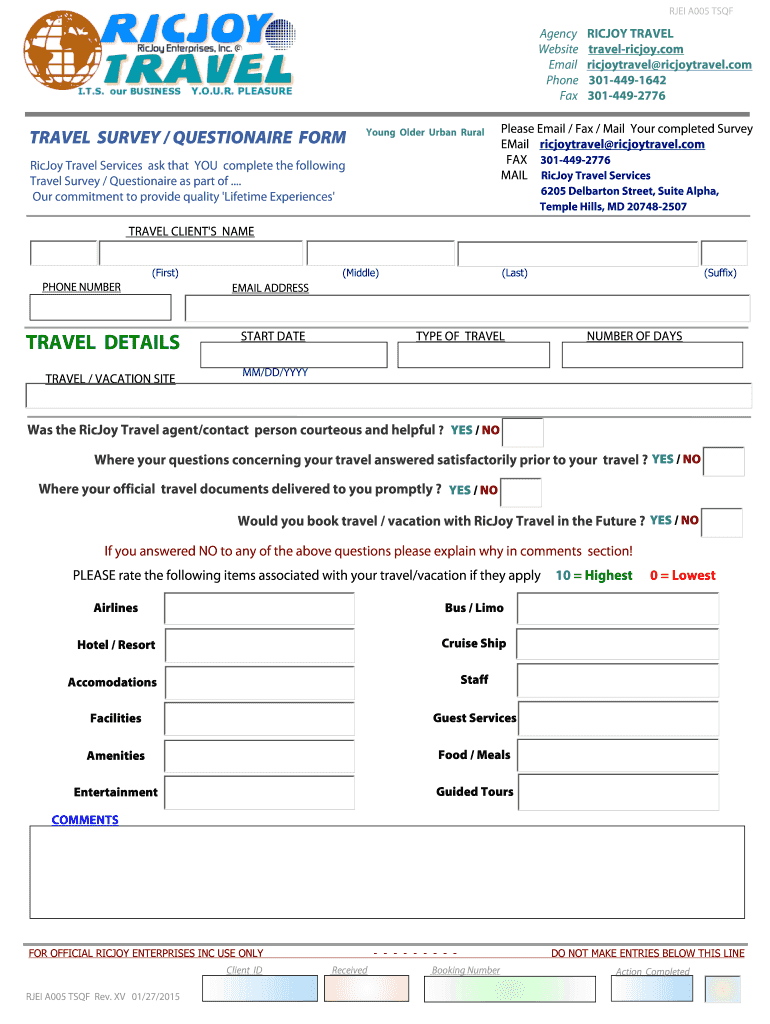 How to fill out a travel survey questionnaire form: