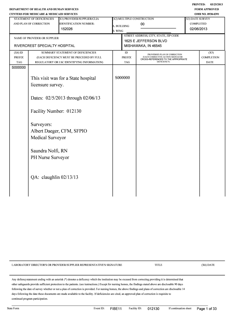 PRINTED: DEPARTMENT OF HEALTH AND HUMAN SERVICES CENTERS FOR MEDICARE & MEDICAID SERVICES STATEMENT OF DEFICIENCIES (X1) PROVIDER/SUPPLIER/CIA AND PLAN OF CORRECTION IDENTIFICATION NUMBER: 152026