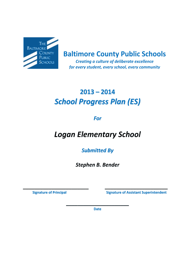 Baltimore County Public Schools Creating a culture of deliberate excellence for every student, every school, every community 2013 2 014 School Progress Plan (ES) For Logan Elementary School Submitted