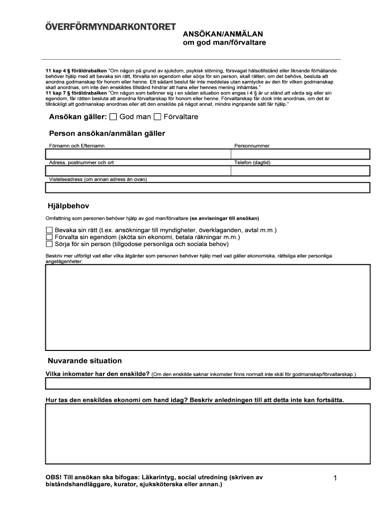 Get the free Blankett fr anskan om god man eller frvaltare - Uppsala kommun