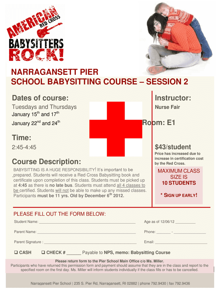 Get the free Narragansett pier school babysitting course - Narragansett Schools