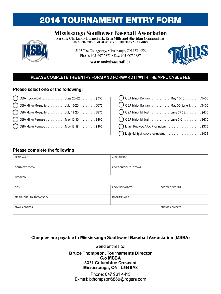 Edit your 2014 tournament entry form form online