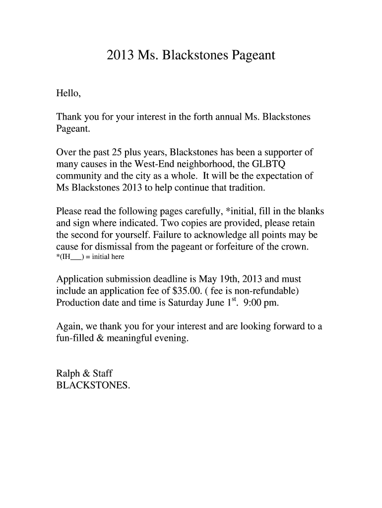 Participants who wish to compete in the Blackstones pageant are required to file an application and meet certain eligibility criteria.