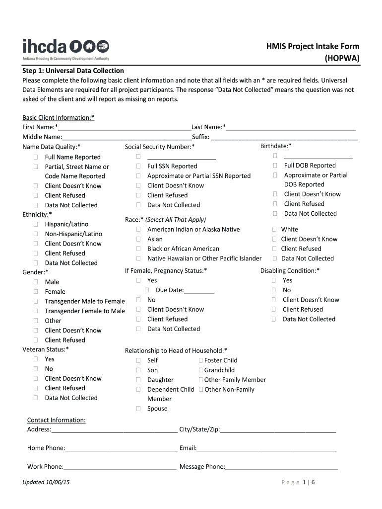 Get the free HMIS Project Intake Form HOPWA - in