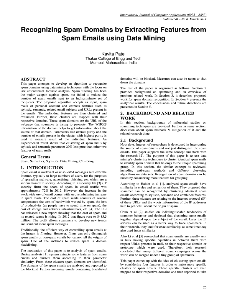 Get the free Recognizing Spam Domains by Extracting Features from Spam Emails using Data Mining. ...