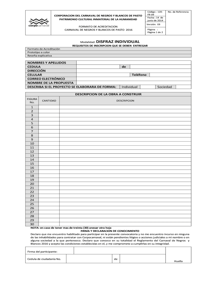 Get the free NOMBRES Y APELLIDOS CEDULA de CELULAR Telfono DESCRIBA SI - carnavaldepasto