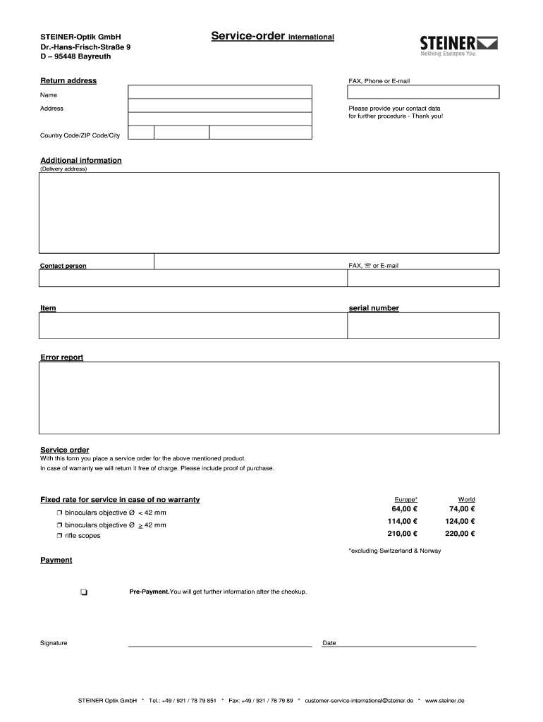 Get the free ServiceauftraginternationalFormular20160406xls - steiner