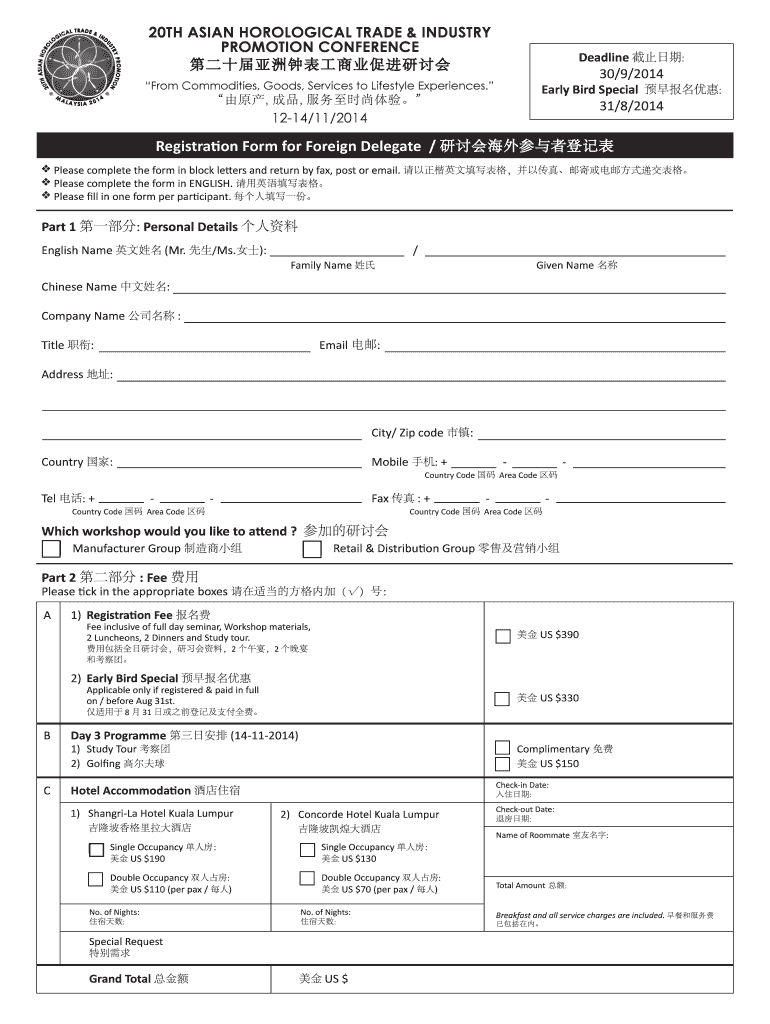 Get the free Registration Form for Foreign Delegate