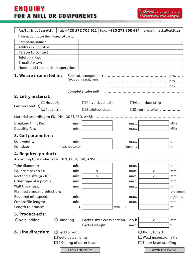 Engineers and designers who are involved in the design and installation of tube mill components often use questionnaires to determine specific requirements and specifications.