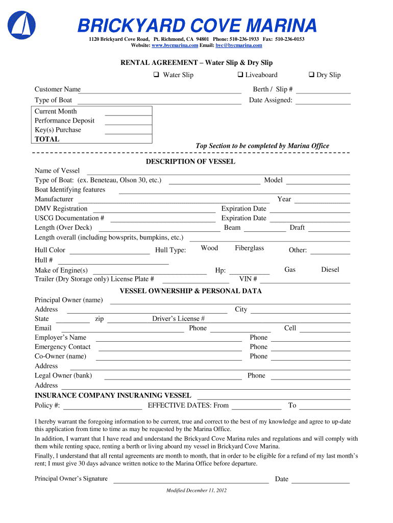 To fill out Brickyard Cove Marina, boat owners or operators need to provide relevant information about their vessel and usage of the marina facilities.