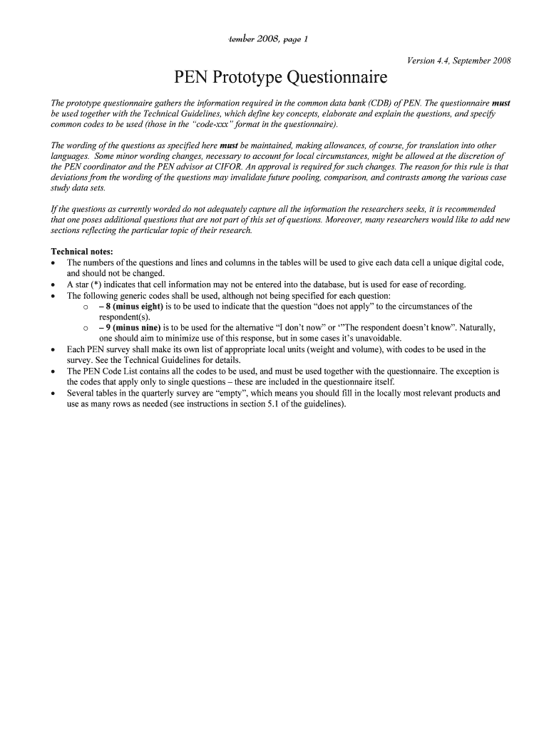 Get the free PEN Prototype Questionnaire - CIFOR - cifor