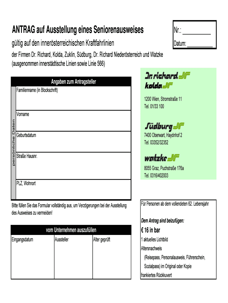 ANT RAG AUF Ausstellung lines Seniorenausweises NR.: g LTI AUF den inner sterreichischen Kraftfahrlinien Datum: her Airmen Dr. Richard, Golda ...