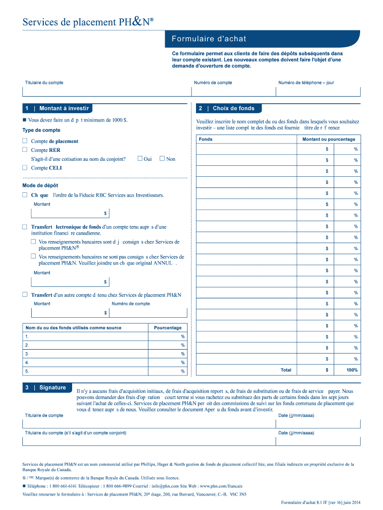 Le Formulaire d'achat doit être rempli par le titulaire du compte d'investissement souhaitant effectuer un dépôt.