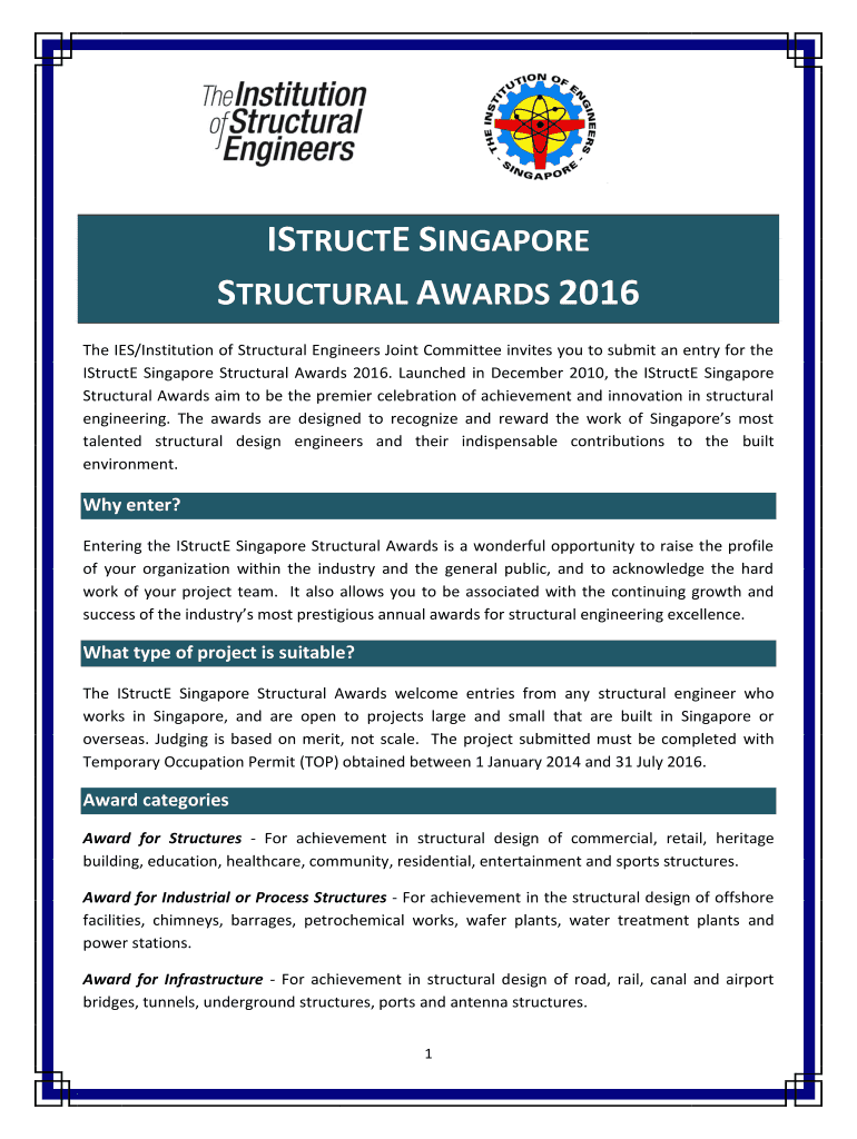Instructed Singapore Structural Awards 2016. Launched