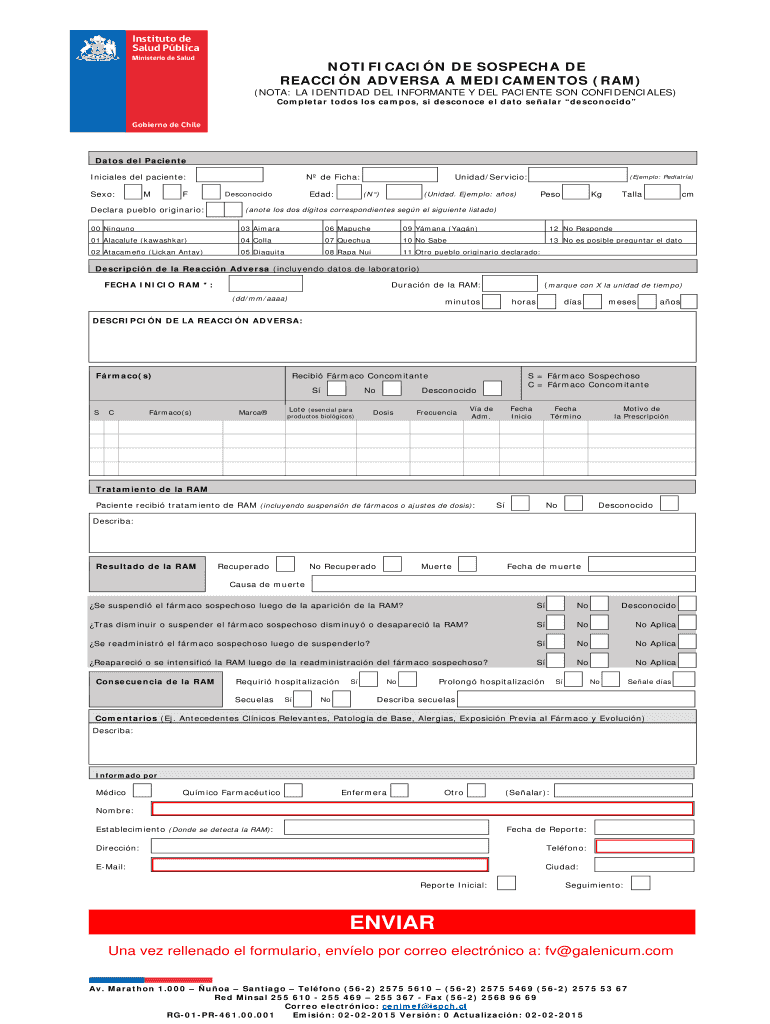 Notification n de suspect DE reach n adverse a medicament (ram) (not: la identical Del informant y Del patients son confidential) completer to-dos Los Campos ...