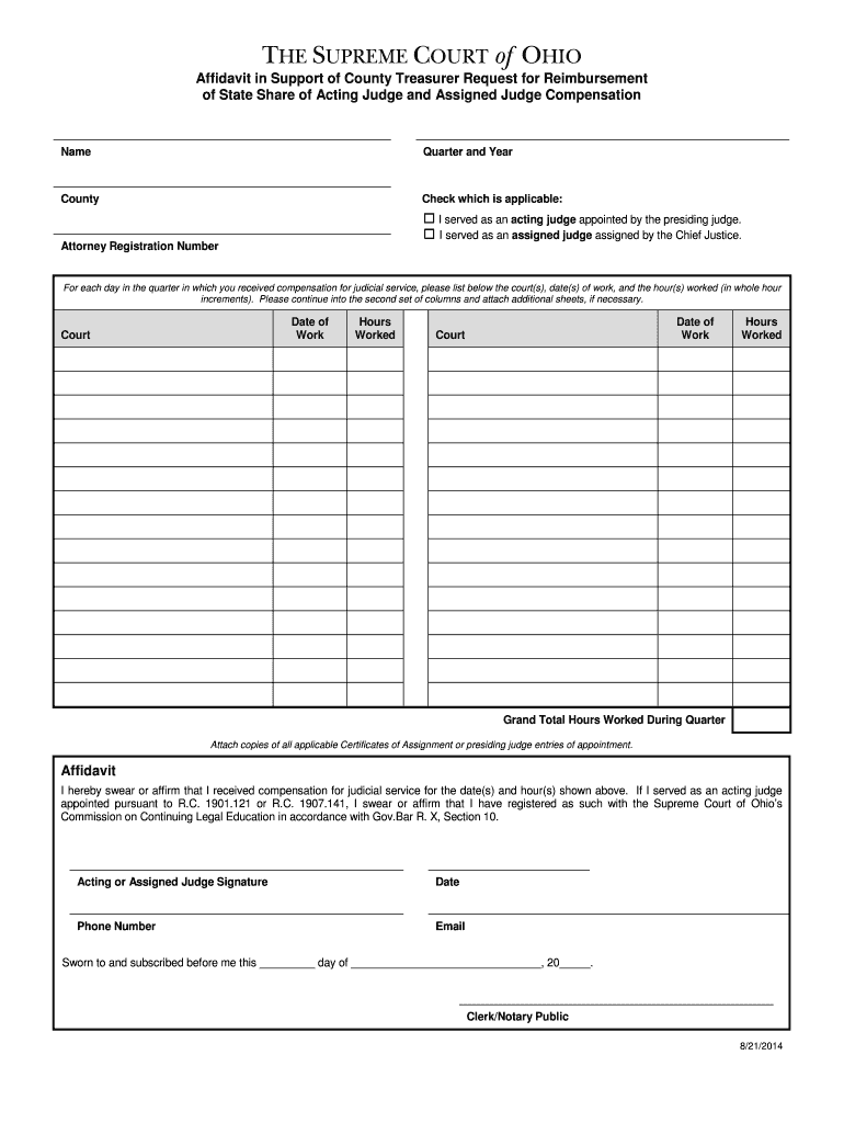 Attach copies of all applicable Certificates of Assignment or presiding judge entries of appointment. Affidavit. I hereby swear or ... Clerk/Notary Public. 8/21/ 2014.